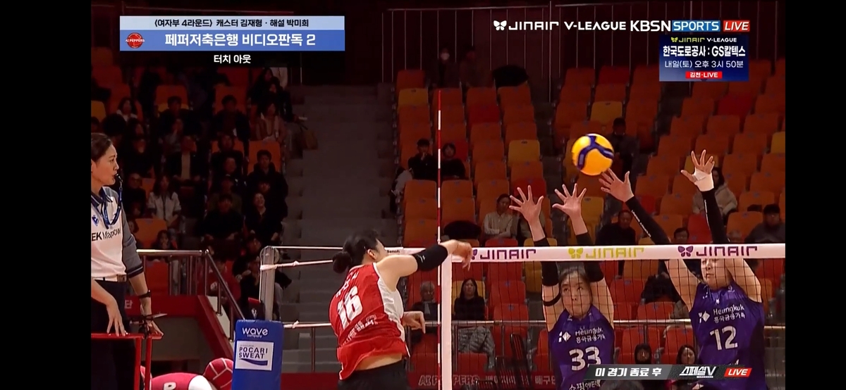 흡사 홍상수 감독의 영화 제목 ‘지금은 맞고 그때는 틀리다’가 떠오른다. 영화 제목을 패러디해보자면 “이틀 전엔 그림자였고, 오늘은 터치아웃이다”라고 해야할까. V리그 여자부에서 이틀 사이에 비슷한 장면이 연출됐는데, 이틀 전엔 손가락이 흔들린 게 아니라 그림자였기에 그대로 ‘노터치’였고, 오늘은 그림자가 아니라 ‘터치아웃’이라는 판독 결과가 나왔다. 비디오 판독을 진행하는 경기위원, 심판위원, 부심이 누구냐에 따라 판독 결과가 달라지는 모양새라 논란이 커질 것으로 보인다. 일단 11일 화성종합체육관에서 열린 2025~2026 V리그 현대건설과 IBK기업은행의 경기부터 살펴보자. 현대건설이 세트 스코어 2-0으로 리드하던 3세트, IBK기업은행이 22-20으로 접전의 리드 상황. 빅토리아의 오픈 공격이 코트 밖으로 벗어났다. 심재일 주심의 첫 판정은 그대로 아웃. 현대건설의 득점이 인정됐다. 그러자 IBK기업은행의 여오현 감독대행이 블로킹 터치 여부를 판독 신청했다.