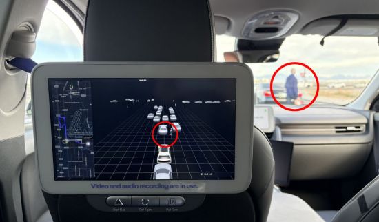 지난 8일(현지시간) 현대자동차그룹 모셔널의 로보택시가 미국 라스베이거스에서 왕복 6차로를 달리던 중 빨간불 신호를 받자 앞차와 유난히 큰 간격을 두고 멈춰섰다. 순간 카메라·레이더 같은 센서 측정 기술의 한계를 의심했지만, 곧바로 무단횡단을 하는 보행자가 '갑툭튀(갑자기 툭 튀어나옴)'로 차량 앞에 진입하는 상황이 펼쳐졌다. 보도 위 사람의 움직임까지 감지해 차로 진입 가능성을 예측한 뒤 넉넉한 차간 거리를 선제적으로 확보한 것이다.