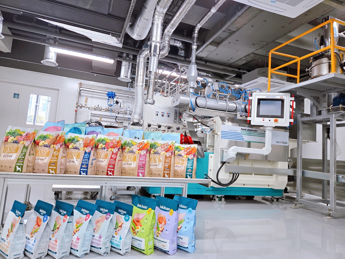 이날 개소식에는 연구소를 직접 둘러보는 투어 프로그램도 진행됐다. 국내 펫푸드 연구소 최초로 ‘익스트루더(사료 제조시설)’가 구비됐다는 파일럿룸이 가장 인상적이었다. 가이드로 나선 박창우 우리와 수석연구원은 “제조공장인 펫푸드키친 200분의 1 규모로 꾸민 공간”이라며 “메인 키친은 시간당 10톤 이상 제품이 생산되는 곳이라 연구가 어렵다. 파일럿룸 덕분에 재료, 크기, 제형 등 연구 내용을 실제로 시험해볼 수 있다”고 의미를 강조했다. 연구 결과가 논문이나 보고서에 머무는 게 아닌 실질적인 제품 경쟁력으로 연결된다는 것.