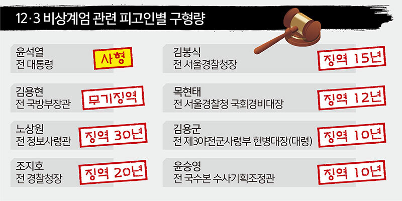 ◆“국가·국민 충성 저버려… 헌법 파괴” 윤 전 대통령이 비상계엄 선포 후 국민을 향해 진지한 사과가 없었고 오히려 선동을 부추겨 국가 지도자로서 책무를 저버렸다는 점도 사형 구형에 반영됐다.
