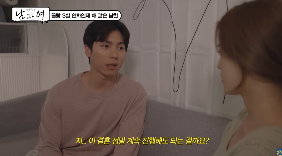 결혼을 계속 이어가도 되는지 고민에 빠진 사연자. 유튜브 채널 'KBS Joy' 영상 캡처 사연을 들은 조충현은 “요즘 ‘연하가 좋다’는 사회적 분위기가 이분을 착각하게 만든 것 같다”고 분석했고, 김민정 역시 “‘나이 어린 내가 결혼을 해준다’고 생각하는 것 같다”고 추측했다. 최서임은 “원래 이런 성향인데 결혼 약속을 계기로 본성을 드러낸 것일 수도 있다”며 “이런 일은 보통 하지 말라는 신의 계시”라고 조언했다.