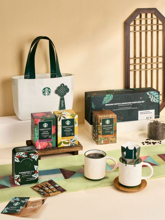 커피 기프트로는 스타벅스의 프리미엄 스틱 커피인 비아(VIA)를 다양하게 경험할 수 있는 '비아 어소트먼트 세트'가 있다. 매장에서 맛보던 원두를 선물하기 좋은 틴케이스에 담아 지난 명절 사전 예약 시 조기 품절될 정도로 큰 인기를 끌었으며, 이번 설을 맞이해 온라인 스토어 한정으로 재출시 된다. '오리가미 & 머그 2P 세트'는 스타벅스의 역사를 느낄 수 있는 원두 파이크 플레이스 드립백과 사이렌 로고가 음각된 도자기제 머그를 함께 구성해 실용적인 설 선물로 제격이다.