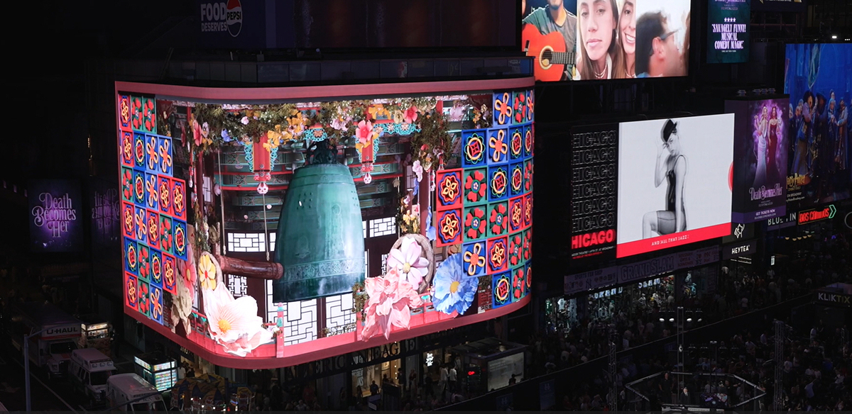 대한민국의 아름다운 자연과 문화유산을 조명한 콘텐츠인 ‘찬란’이 타임스케어 전광판을 통해 상영됐다. 충남 공주 마곡사를 중심으로 대한민국의 아름다운 자연과 문화유산을 조명한 콘텐츠인 ‘찬란’도 상명대의 AR·VR미디어디자인전공 4학년 송시연, 임지은 학생 등이 주도했다. 상명대 AR·VR미디어디자인전공 학과장 김원재 교수는 “상명대 AR·VR미디어디자인전공은 디자인 기반의 공학, 인문학, 마케팅을 아우르는 융복합 교육과정을 바탕으로 실감형 미디어 기술을 기반의 콘텐츠 기획 및 제작 능력을 갖춘 창의적 융합 인재를 양성에 최선을 다하고 있다”며 “충남콘텐츠진흥원을 통한 충남도의 지원에 힘입어 우리 대학생들이 세계속에 대한민국을 알리를 좋은 결과를 냈다”고 말했다.