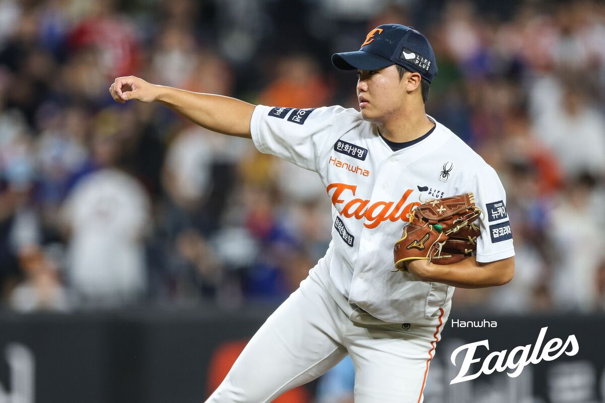 정우주가 모처럼 자신의 포심 패스트볼의 위력을 제대로 발휘하며 진기록을 하나 써냈다. 공 9개로 삼진 3개를 잡아내며 한 이닝을 끝마치는 ‘무결점 이닝’을 만들어냈다. KBO리그 역대 11번째이자 신인으로는 지난해 김택연(두산) 이후 두 번째 기록이다. 정우주는 28일 서울 고척스카이돔에서 열린 키움과의 원정 경기에서 한화가 8-3으로 앞선 7회 무사 1,2루에서 등판했다. 첫 타자 임지열을 삼구 삼진으로 솎아내며 기세를 올린 정우주는 김웅빈과 루벤 카디네스도 삼구 삼진으로 처리하며 이닝을 마쳤다.