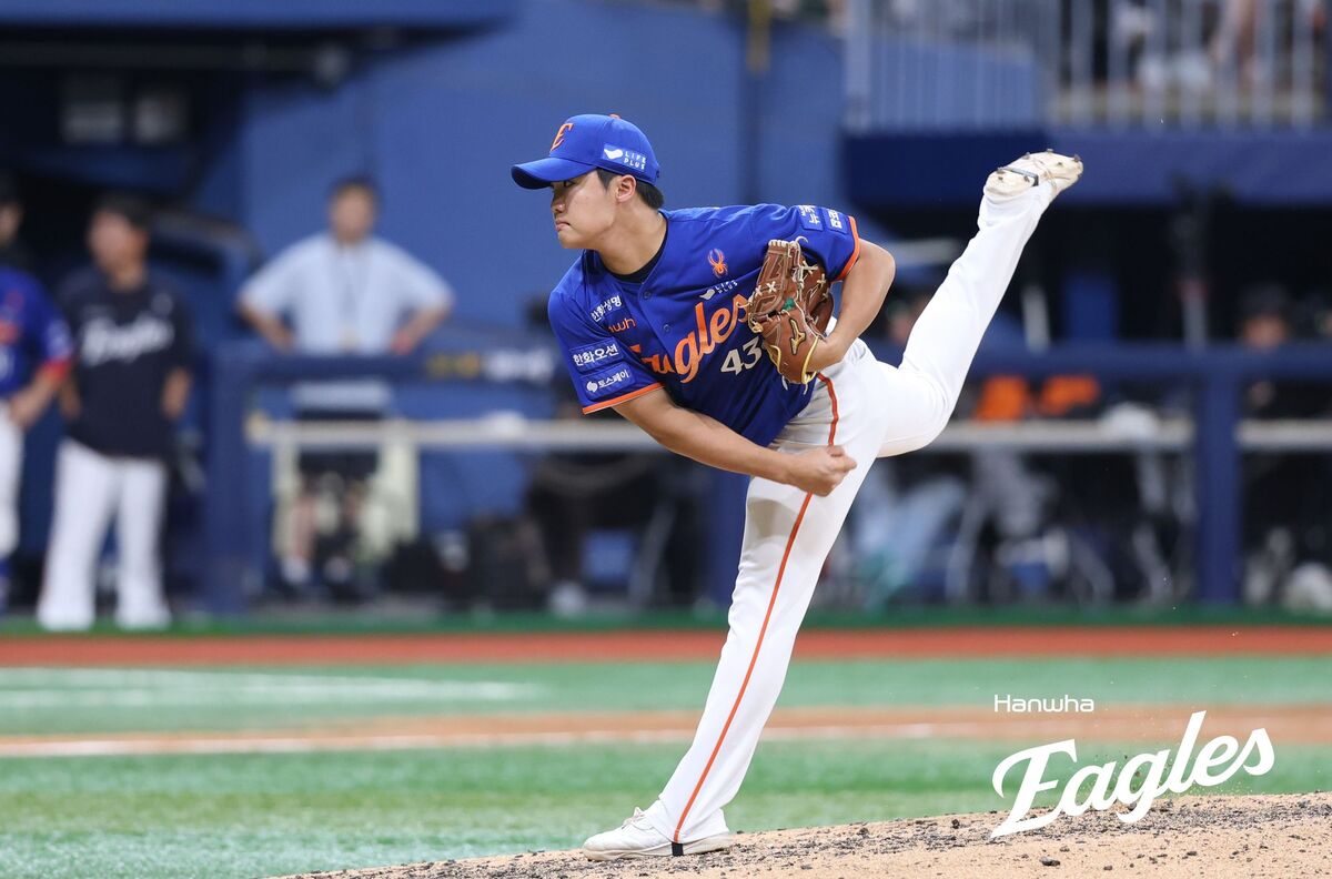 정우주의 ‘무결점 이닝’이 더욱 흥미로운 부분은 던진 공 9개가 모두 포심 패스트볼이었다는 점이다. ‘칠 테면 쳐봐’ 식의 정면 승부를 펼쳤고, 키움 타자들은 정우주의 포심 패스트볼의 구위에 눌려 인플레이 타구를 만들어내지 못했다. 아니 파울조차 만들어내지 못하고 헛스윙이 네 번이나 나왔다. 최고 153km, 최저 151km의 구속을 찍을 만큼 구속에도 기복이 없었다.