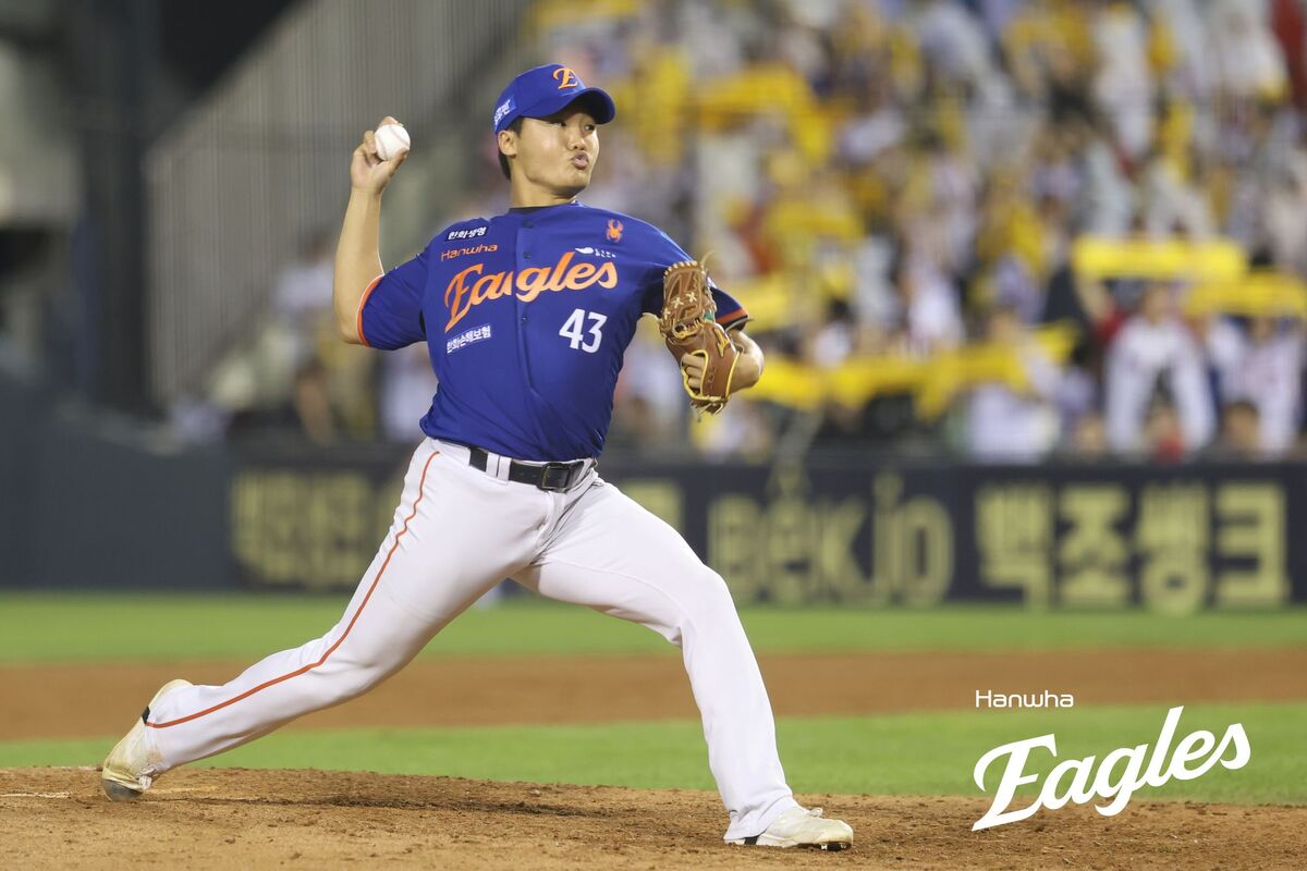 정우주의 올 시즌 성적은 43경기 41.2이닝 2승 3홀드 평균자책점 3.24다. 탈삼진은 무려 67개로, 9이닝 당으로 환산하면 14.47개에 달한다. 40이닝 던진 투수 중 9이닝 당 탈삼진은 정우주가 단연 1위다. SSG의 드류 앤더슨이 12.85개로 2위, 한화 코디 폰세가 12.56개로 3위를 달리고 있다. 아직 신인이라 변화구 완성도가 떨어지지만, 위력적인 포심 패스트볼을 앞세운 탈삼진 능력만큼은 비범한 것은 틀림없다. 이날 고척스카이돔에는 코디 폰세(한화)와 송성문(키움) 등 내년 빅리그 진출이 가능한 선수들을 지켜보기 위해 미국 메이저리그 11개 구단의 스카우트가 집결했다. 아직 해외 진출 자격을 얻으려면 한참 남았지만, 이들이 가장 인상적으로 본 투수는 정우주가 아니었을까.