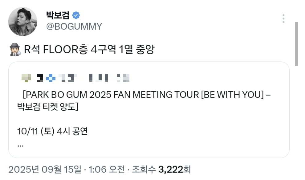 박보검이 게재한 경고글. 현재는 삭제됐다. 박보검 X(옛 트위터) 캡처 이 같은 소식을 접한 네티즌들은 “결국 박보검이 직접 등판해서 잡네”, “해당 구역 당사자 찔려서 확인 엄청할 듯”, “암표상은 사라져야 한다”, “저렇게 아티스트 본인이 나서주니 팬들 입장에선 고마울 뿐” 등의 다양한 반응을 보이며 응원이 일었다.