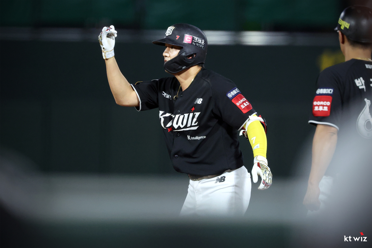 4-3으로 이어지던 경기에 균열이 난 건 8회. KIA는 최형우의 몸에 맞는 공에 이어 위즈덤 대신 대타로 나선 나성범의 좌익선상 2루타로 무사 2,3루 기회를 잡았다. 급해진 KT 벤치는 프라이머리 셋업맨 손동현을 올려 오선우를 삼진으로 솎아냈고, 1사 2,3루에서 마무리 박영현을 올렸다. ‘5아웃 세이브’를 맡겼지만, 박영현은 김석환에게 동점 희생플라이를 맞고 블론 세이브를 기록했다.