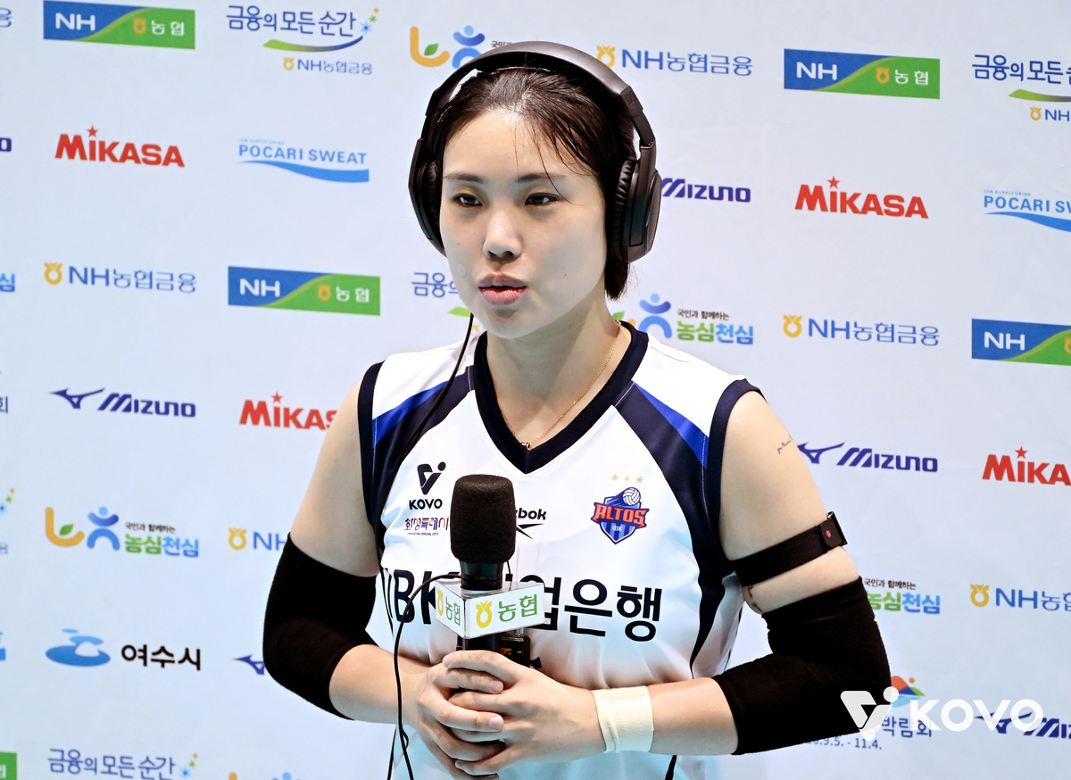 1세트와 2세트 초반 웜업존에서 경기를 지켜본 게 큰 도움이 됐다는 김하경이다. 그는 “(최)연진이 플레이하는 걸 보면서 ‘이럴 땐 상대가 이렇게 반응하는구나’ 등을 생각하면서 지켜봤던 것 같아요. 이렇게 하면 이게 통하는구나 이런 생각을 하면서 배구를 했던 게 주효했어요”라고 설명했다. 중앙 활용이 유독 돋보였던 김하경이었다. 그는 “KOVO컵을 국내 선수끼리 치르게 되면서 제가 전위에 올라가면 전위에 공격수가 둘밖에 없는 상황이잖아요. V리그 때라면 외국인 선수의 큰 대포가 있지만, 지금 상황에서 상대 블로킹을 찢기 위해선 중앙 활용을 많이 해야겠다라고 생각을 했어요. 세트를 거듭할수록 리시브가 너무 안정적으로 올라와서 더 자신있게 미들 블로커의 외발 공격을 활용할 수 있었어요”라고 설명했다.