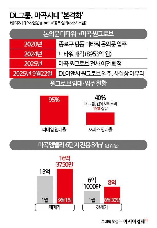 DL그룹은 1939년 인천 부평역 앞 '부림상회'에서 출발해 86년간 서울 용산구 동자동, 종로구 수송동과 평동(돈의문 디타워)을 거쳐 마침내 마곡에 새 둥지를 틀었다. DL이앤씨는 2020년부터 본사로 써왔던 디타워 재계약 여부를 고민하다 임차료 인상보다 합리적이라는 판단 아래 마곡행을 결정했다. 다만 향후 재건축을 추진 중인 수송동 사옥으로 장차 복귀할 가능성은 남아 있다.