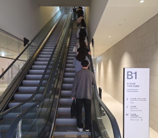 점심시간이 다가오자 열기는 더욱 뚜렷했다. 원그로브 지하 1층은 A~D동이 서로 연결돼 있고, 수십 개의 식음료(F&B) 매장이 밀집해 있다. 이날 A동 지하의 일식집·탄탄멘 전문점 등은 4~5팀씩 대기가 발생하며 20분 이상 기다려야 입장할 수 있었다. 식당에 바로 들어가지 못한 이들은 매장마다 마련된 '캐치테이블'에 대기를 걸어놓고 주변 옷가게·서점·악세서리 숍 등을 둘러보며 시간을 보냈다.