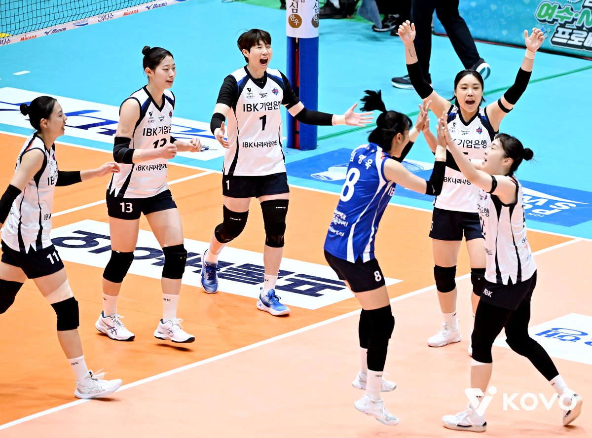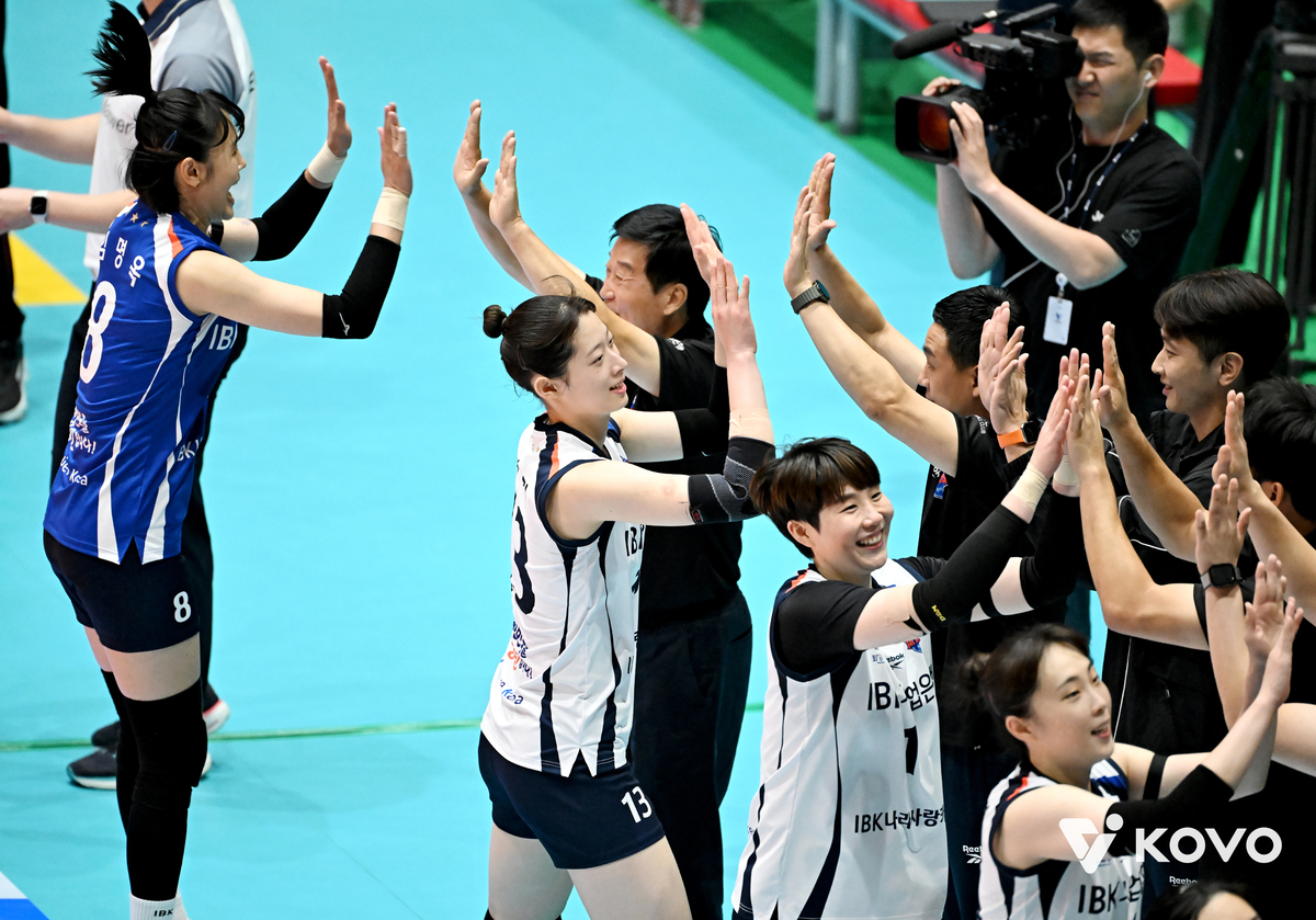 대선배이자 여전히 최고의 기량을 자랑하는 임명옥이 IBK기업은행에 합류하면서 확실히 분위기가 달라졌다. 기존의 고참급인 황민경이나 이소영도 임명옥과 많은 대화를 나누고 있다. 임명옥은 “애들이 ‘언니 믿고 가겠다’라고 말해주더라고요. 연습 때도 코트 위에서 장난을 치기도 하면서 분위기도 풀어주고 하고 있어요”라고 설명했다. 옆에 있던 김하경도 “오늘도 제가 어떻게 경기를 풀어나가야할지 막막할 때 명옥 언니한테 물어보고 그랬어요”라고 거들자 임명옥은 “상대 서브 전에 저는 상대 코트를 보고 있잖아요. 그러다보니 상대 미들 블로커의 움직임이나 이런 게 더 잘 보이니까 상대를 등지고 있는 하경이한테 이런 저런 사인도 주고 그러는거죠”라고 화답했다.