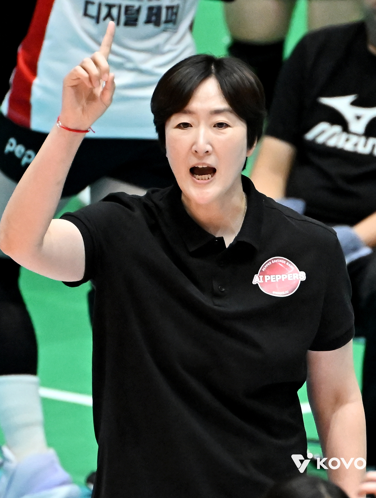 “제가 다 당한게 아닌데...” 페퍼저축은행과 흥국생명의 2025 여수·NH농협컵 프로배구대회(이하 KOVO컵) 조별예선 A조 맞대결이 펼쳐진 23일 여수 진남체육관. 경기 전 만난 페퍼저축은행 장소연 감독에게 페퍼저축은행의 구단 역사상 KOVO컵 첫 승에 대한 부담감이 크지 않냐는 질문에 돌아온 웃음섞인 하소연이다.