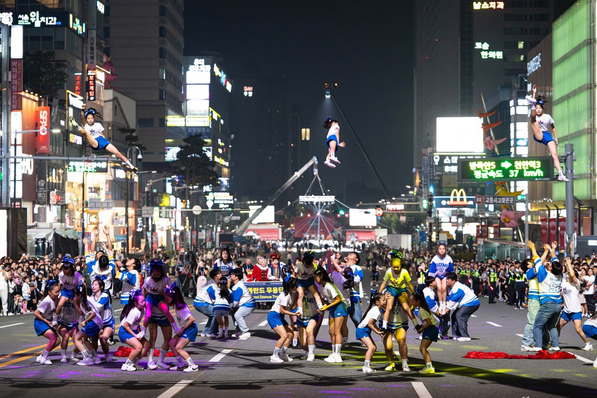 천안흥타령축제의 백미인 거리퍼레이드에는 국내외 37개 팀, 2000여명이 참여해 화려한 퍼포먼스를 선보였다. 도심 한복판에서 열린 거리댄스 퍼레이드는 신나는 음악과 화려한 조명, 시민들의 호응이 한데 어우러지면서 시민 모두가 축제의 주인공이 되는 모습을 연출했다.