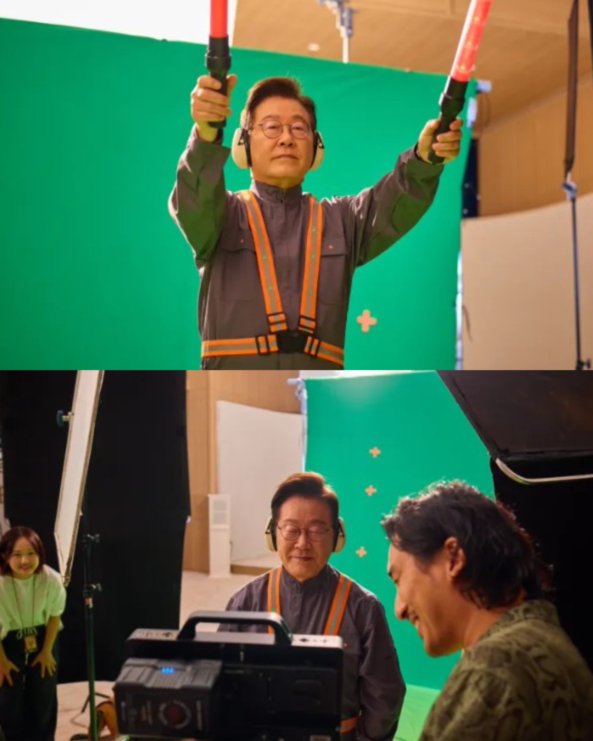 항공기 유도원으로 등장한 이재명 대통령. 유튜브 채널 'APEC 2025 KOREA' 영상 캡처 이 대통령이 항공기 지상 이동을 유도하는 항공기 유도원(마샬러) 역할로 출연한 것이다. 공항 배경은 CG로 합성됐지만, 이 대통령은 2초 동안의 장면에서 직접 항공기 유도원 옷으 입고 사뭇 진지한 표정으로 촬영에 임했다. 이 대통령은 이날 자신의 사회관계망서비스(SNS)에 “이제부터 진짜 #주차관리남. 감독님 이거 맞아요?”라는 글과 함께 용산 대통령실에서 지난 8월 촬영한 미공개 사진 7장을 공개했다.