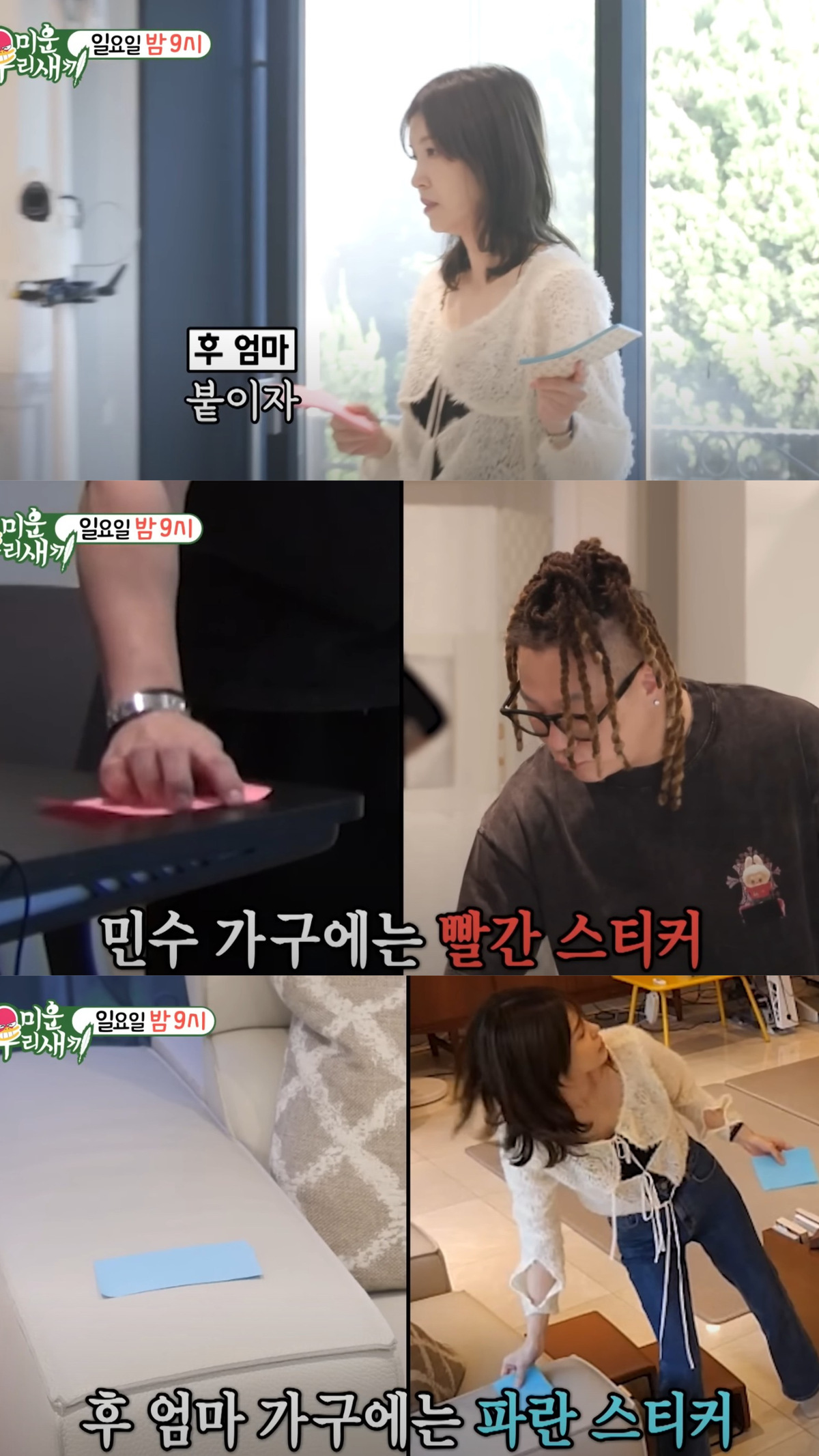 윤민수는 자신의 물건에는 빨간 스티커를, 김민지 씨는 자신의 물건에 파란 스티커를 붙이며 물건들을 정리했다.