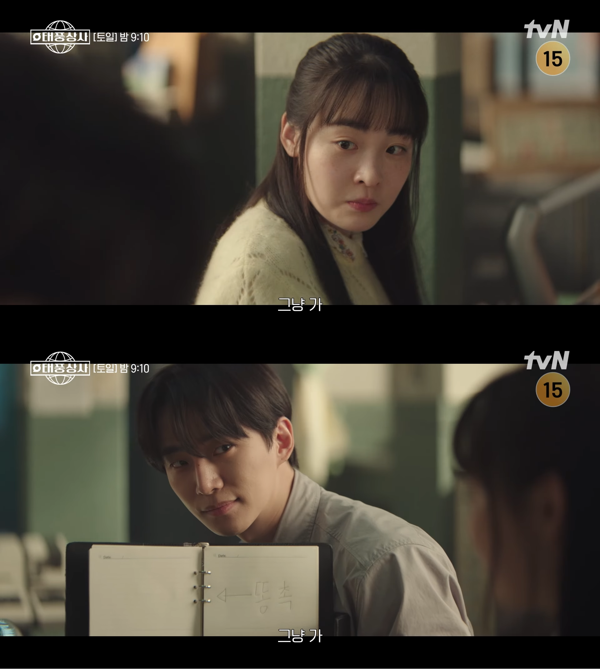 ‘태풍상사’는 1997년을 완벽하게 구현한 소품, 배경, 음악 등으로 극의 몰입도를 높였다. tvN 유튜브 캡처 김민하 역시 두 동생과 치매를 앓고 있는 할머니를 돌보며 일과 공부를 병행하며 꿈을 놓치지 않는 K-장녀 오미선으로 완벽 변신했다. 섬세한 표정과 눈빛만으로 90년대 직장인의 생존력과, 현실 그리고 그 속에 담겨 있는 그 시대의 따뜻한 온기를 생생히 전했다.