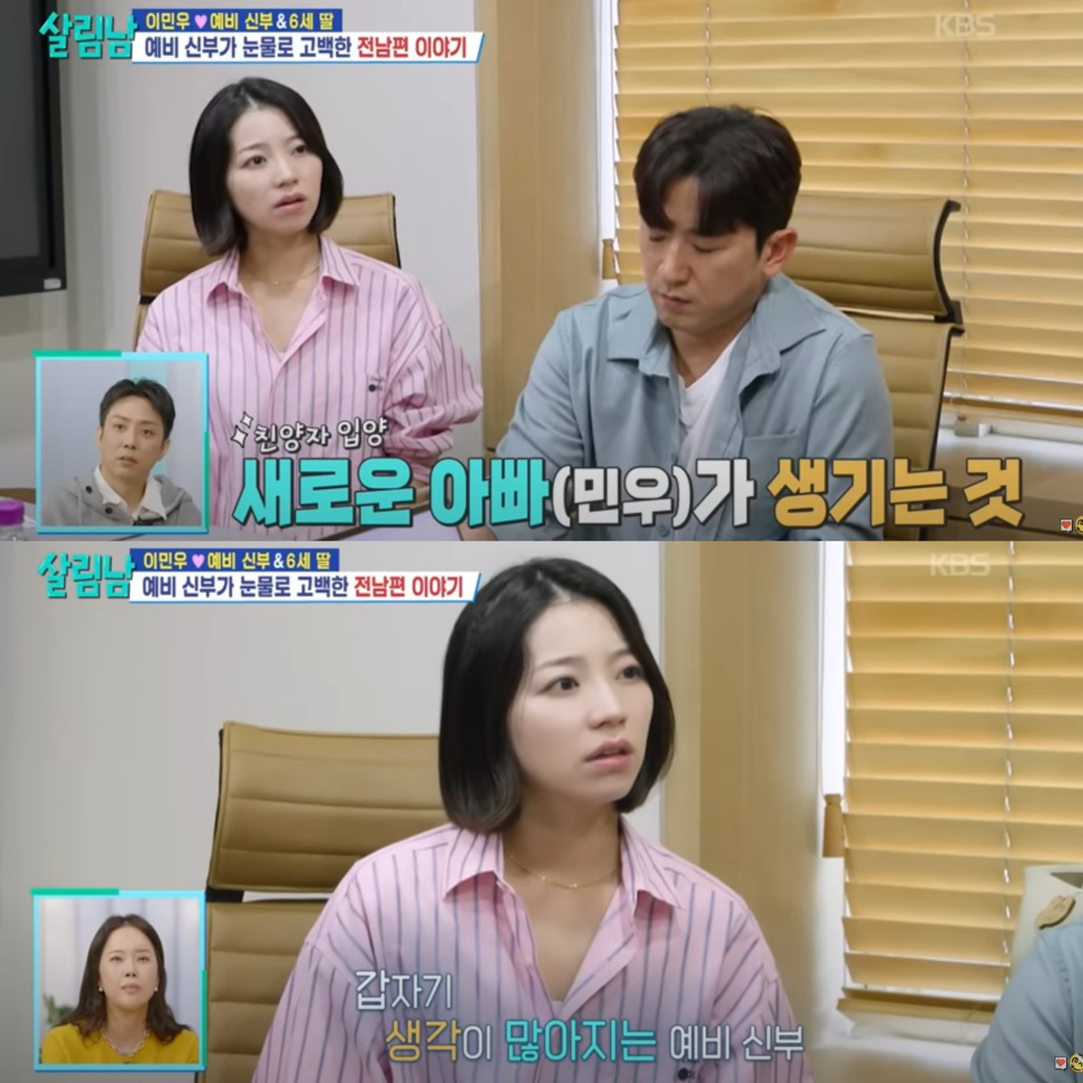 주민센터를 찾은 이민우와 예비 신부. 유튜브 채널 'KBS Entertain' 영상 캡처 이민우가 “가족관계증명서에 예비 신부와 딸, 두 사람이 다 나올 수 있느냐”고 물었는데, 주민센터에서는 “예비 신부의 딸을 아이로 인정받기 위해서는 입양 절차를 거쳐야 한다”는 답변을 들었다. 이민우는 그 길로 이인철 가사법 전문 변호사를 찾아가 법적으로 딸과 가족이 될 수 있는 방법을 물었다.