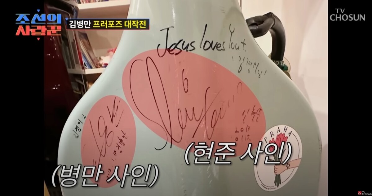 신현준과 김병만의 사인이 적힌 첼로 케이스. 유튜브 채널 'TVCHOSUN - TV조선' 영상 캡처 신현준은 “그 첼로 케이스가 아직도 집 거실에 있다”라면서 “그렇게 내 인생이 김병만 덕분에 바뀌었다”라고 밝혔다. 한편, 절친한 우정을 자랑하는 두 사람은 서로에게 고민 상담을 많이 한다고 이야기하기도 했다.