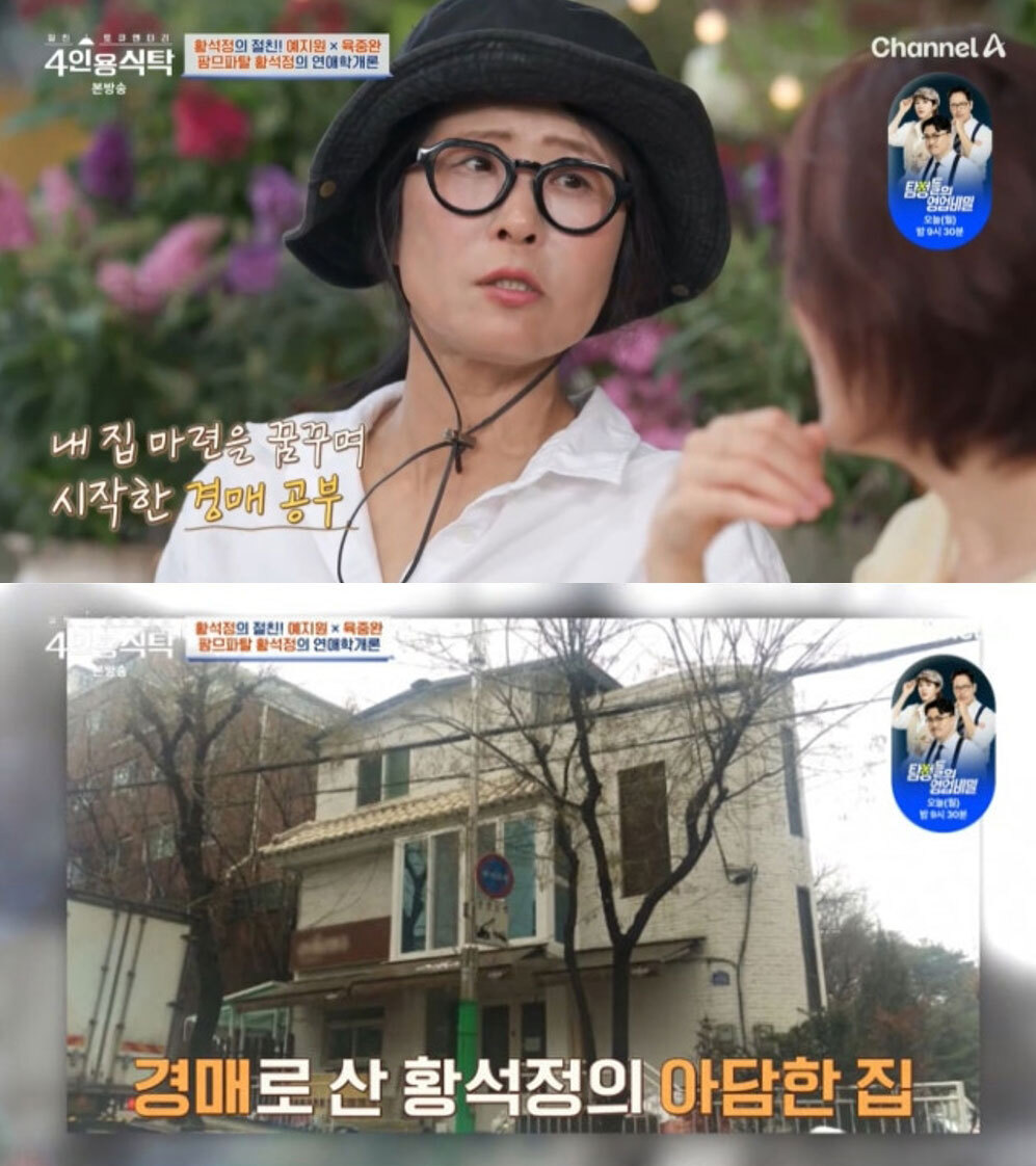채널A ‘절친 토큐멘터리-4인용 식탁’ 방송 화면 캡처 또 “경매 공부를 시작해 내 집 마련을 했다”고 밝히며, 연기 외에도 스스로의 삶을 개척해온 과정을 전하기도 했다. 황석정은 서울대 국악과를 졸업하고 한국예술종합학교 연극원 연기과를 거쳐 2001년 영화 ‘고양이를 부탁해’로 데뷔했다. 이후 영화 ‘더 폰’, ‘살인자의 기억법’, ‘그것만이 내 세상’, 드라마 ‘미생’, ‘동네 변호사 조들호’, ‘친애하는 판사님께’ 등 다수의 작품에서 꾸준히 활약하며 자신만의 연기 색을 만들어왔다. 그는 ‘서울대 출신 배우’라는 타이틀에 갇히지 않고, 화려함보다 자신만의 속도로 살아가는 현실형 배우로 자리잡았다.