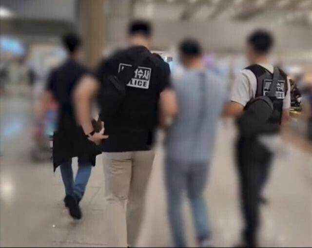 KT 소액결제 사건 피의자인 중국동포 A씨가 지난달 16일 인천공항을 통해 재입국한 직후 검거되고 있다. 경기남부경찰청 제공 앞서 과학기술정보통신부는 KT가 무단 소액결제 및 해킹 사태에서 허위 자료 제출, 증거 은닉 등 정부 조사를 방해한 고의성이 있다고 판단해 지난 2일 경찰에 수사 의뢰했다. 과기정통부는 13일 정부세종청사에서 열린 국정감사에서 KT가 서버 폐기 시점을 지난 8월1일이라고 밝혔지만 실제로 같은 달 13일까지 폐기 작업을 진행하는 등 허위로 답변을 제출했고, 폐기 서버 백업 로그가 있었지만 지난달 18일까지 민관 합동 조사단에 밝히지 않았다고 했다.
