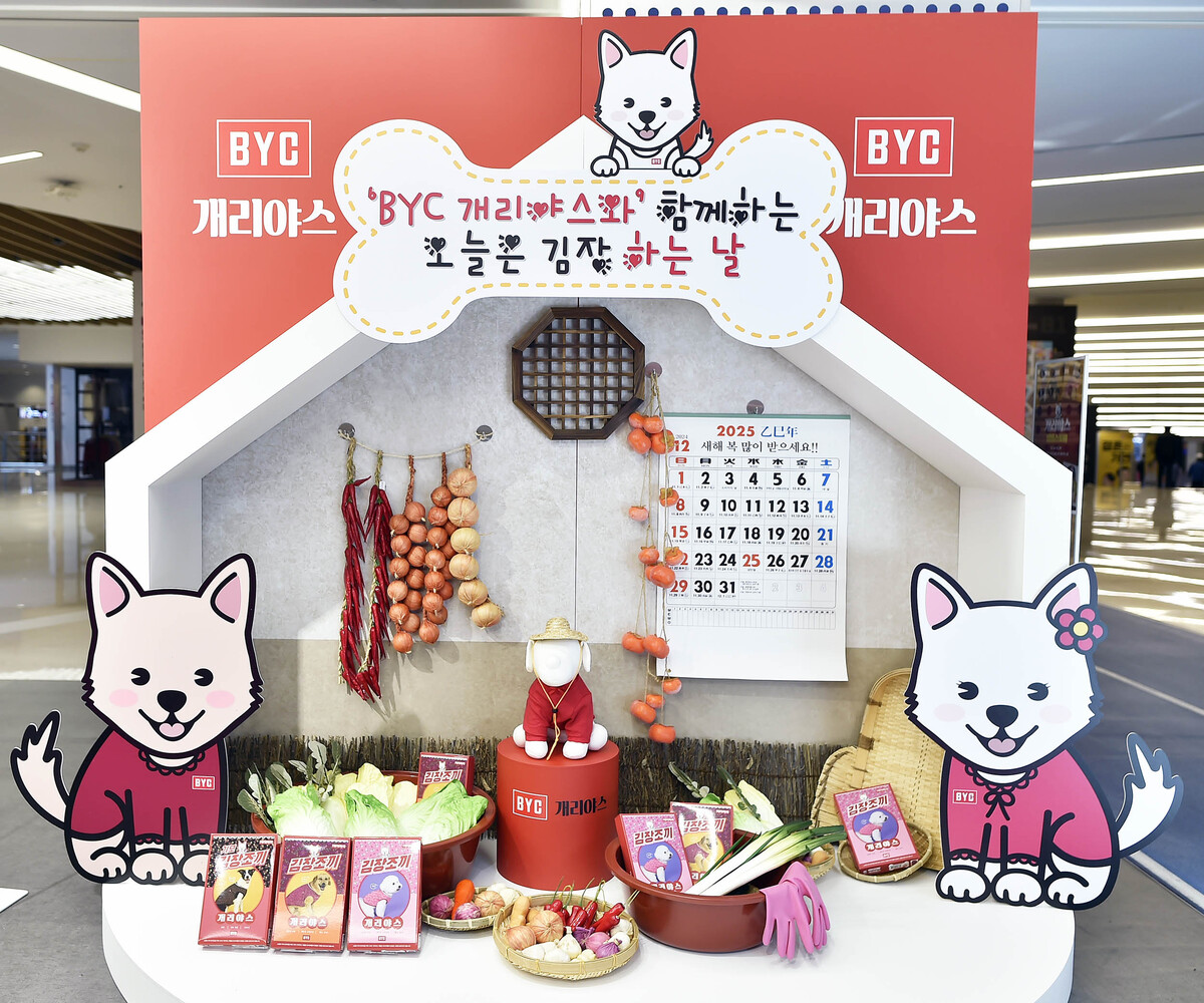 제품 구매 고객에게는 3만원 이상 구매 시 ‘개리야스 리유저블백’을 증정하고, 랜덤 추첨을 통해 양말, 고급수건, 펫타올, 텀블러 등 즉석 경품을 제공한다. 또한 현장에서 BYC 카카오톡 채널을 추가하면 ‘개리야스 카카오톡 이모티콘’도 받을 수 있다.