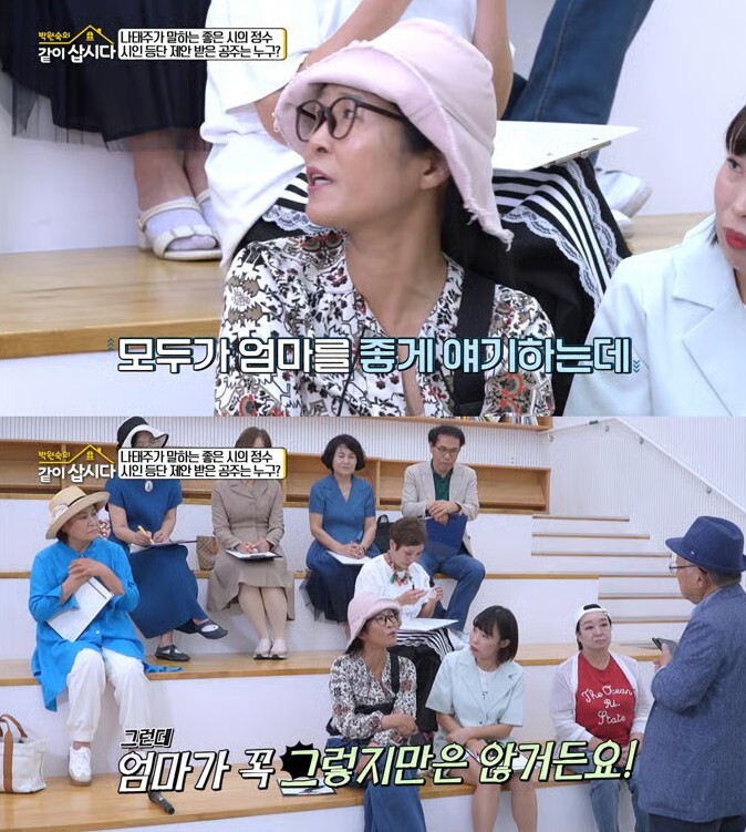 게스트들은 시 창작을 시작했고, 나태주는 “생각이 잘 안 나는 분들은 ‘엄마’라는 제목으로 써도 좋다”고 제안했다.
