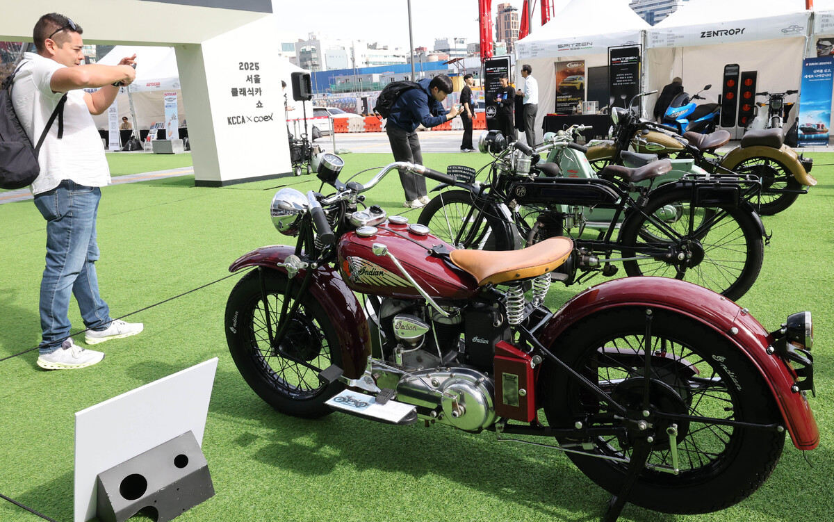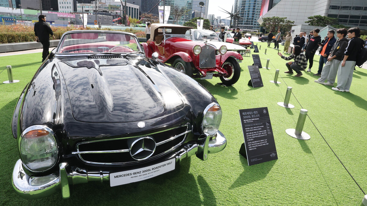 24일 서울 강남구 삼성동 코엑스광장에서 열린 ‘서울클래식카쇼 2025’전시를 찾은 관람객들이 클래식카를 살펴보고 있다. 한국 클래식카 문화의 현재와 미래를 한자리에서 만나는 ‘서울클래식카쇼 2025’는 메르세데스-벤츠 300 SL 로드스터를 비롯해 현대 포니, 제미니, 칼리스타 등 국내외 대표 헤리티지카와 클래식 모터바이크 등 다양한 클래식 차량이 한자리에 모이는 국내 최초의 도심형 클래식카 전시로 도심 한가운데에서 역사적 가치를 간직한 자동차들을 가까이에서 감상할 수 있다. 한국클래식카협회, 코엑스 주최로 개최된 이번 전시는 26일까지 열린다.