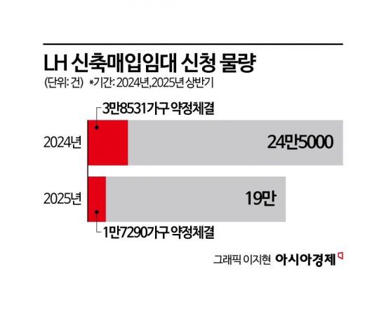 목표치가 높아지면서 신청 접수 물량은 대폭 늘었다. 지난해는 한 해 동안 총 24만5000가구가 매입을 신청했으나, 올해는 상반기에만 약 19만건의 신청이 몰렸다. 이 중 실제 약정을 체결한 가구 수는 1만7290가구 정도다.