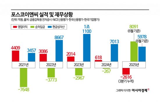 포스코이앤씨의 재무 체력도 급격히 나빠졌다. 2020년부터 5년 연속 '사실상 무차입 경영'을 이어온 기조가 올해 들어 완전히 무너졌다. 2024년 말 -267억원이던 순차입금(연결기준)은 올해 6월 말 기준 8091억원으로 급증하며 순채무 상태로 돌아섰다. 나신평은 "부채비율은 136.1%, 순차입금의존도는 10.1%로 재무구조가 급격히 저하된 모습"이라고 평가했다.