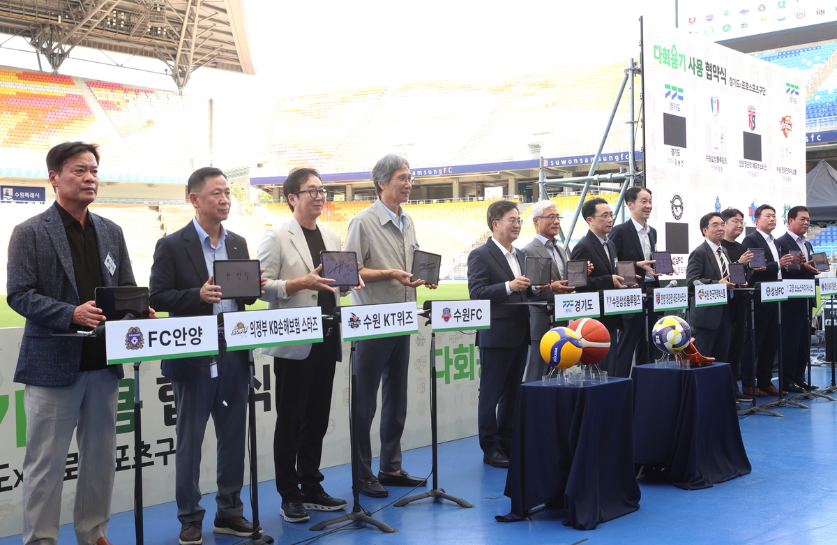 협약에 따라 수원월드컵경기장, 수원KT위즈파크 야구장 등 도내 4곳의 프로 전용 구장에서만 시행돼 온 다회용기 사용이 도내 모든 프로구단 경기장으로 확대된다.