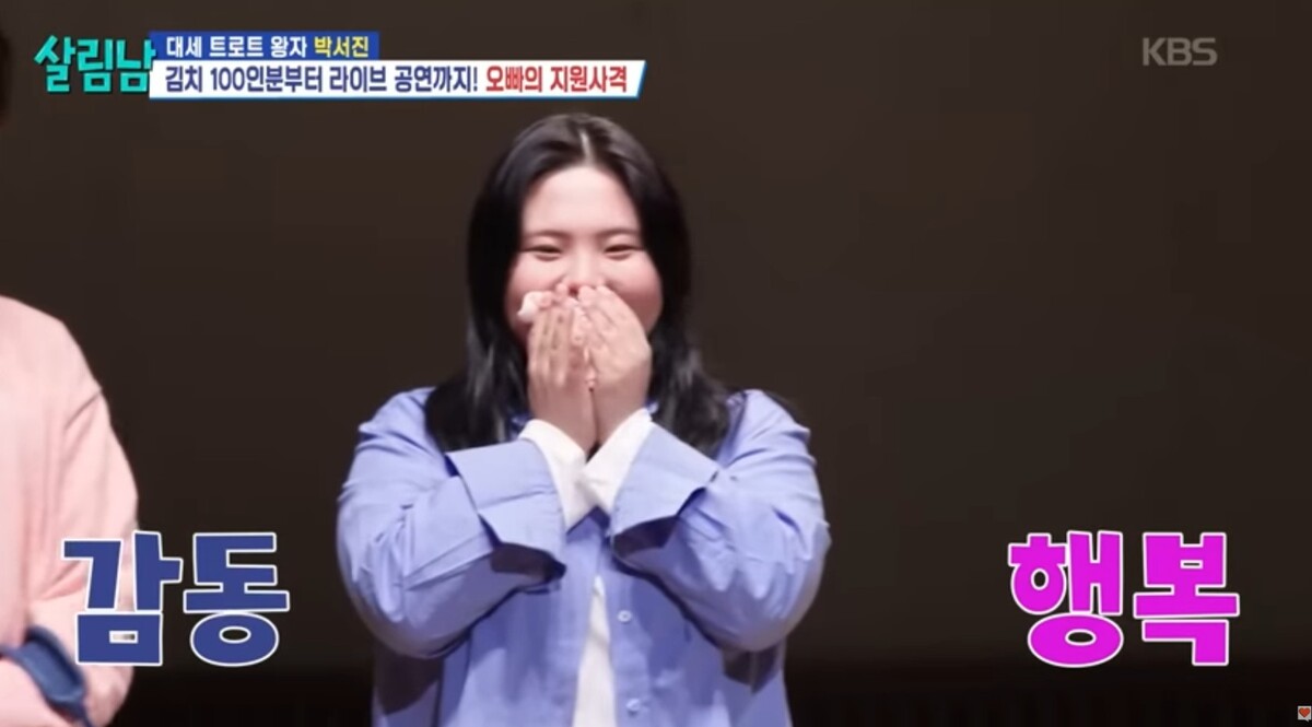 박서진이 동생의 자존감을 높여주기 위해 팬미팅을 개최했다. 유튜브 채널 'KBS Entertain' 영상 캡처 박서진이 동생의 자존감을 높여주기 위해 팬미팅을 개최했다. 지난 15일 방송된 KBS 2TV ‘살림하는 남자들 시즌2’에서는 박서진과 동생 효정의 유쾌한 팬미팅 프로젝트가 그려졌다.